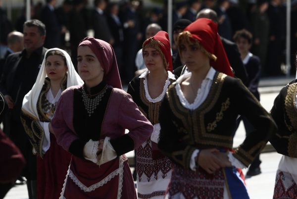 Στην παρέλαση συμμετείχαν πολλοί νέοι και νέες που φορούσαν παραδοσιακές στολές από διάφορες περιοχές της Ελλάδας.