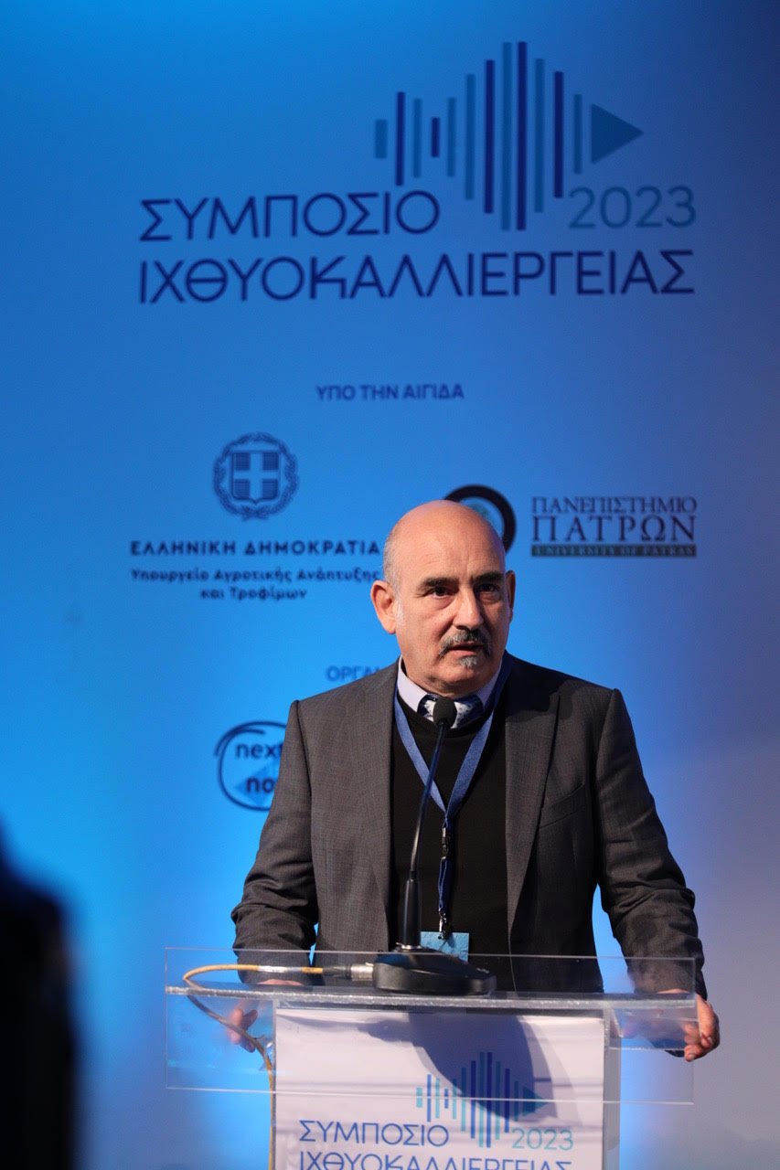 Στη συνέχεια χαιρετισμό στο συμπόσιο απηύθυνε ο Καθηγητής και πρόεδρος του τμήματος Αλιείας και Υδατοκαλλιεργειών του Πανεπιστημίου Πατρών, Ιωάννης Θεοδώρου. Ο κ. Θεοδώρου ανέφερε ότι «πριν 40 χρόνια όταν ξεκίνησαν οι ελληνικές ιχθυοκαλλιέργειες, η τεχνογνωσία μεταφέρθηκε από τον βορρά όσον αφορά τον εξοπλισμό και από τη Γαλλία και την Ισπανία όσον αφορά στο ζωικό κεφάλαιο. Σήμερα μετά από τέσσερις δεκαετίες η Ελλάδα όχι μόνο παράγει τεχνογνωσία αλλά εξάγει τεχνογνωσία. Και όλο αυτό στηρίχθηκε στις συνεχείς βελτιώσεις και στην συνεχή πειραματισμό που γίνεται στο πεδίο όσο και στα εργαστήρια. Η σχολή μας έπαιξε ιστορικό ρόλο στη στελέχωση αυτής της δραστηριότητας. Σήμερα, μιλάμε για ένα ελληνικό «θαύμα» που θέτει την παραγωγή μας στις πρώτες θέσεις των μεσογειακών ειδών».