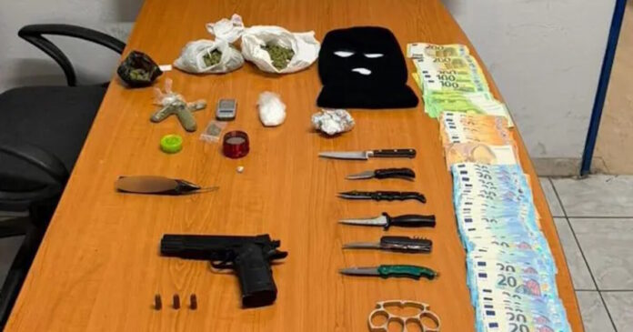 Επιπλέον, από έρευνες στα σπίτια των συλληφθέντων βρέθηκαν, μεταξύ άλλων, και κατασχέθηκαν ποσότητες ακατέργαστης κάνναβης, κοκαΐνης και μεθαμφεταμίνης, πιστόλι-ρέπλικα, 6 μαχαίρια, σιδερογροθιά και διαρρηκτικά εργαλεία.