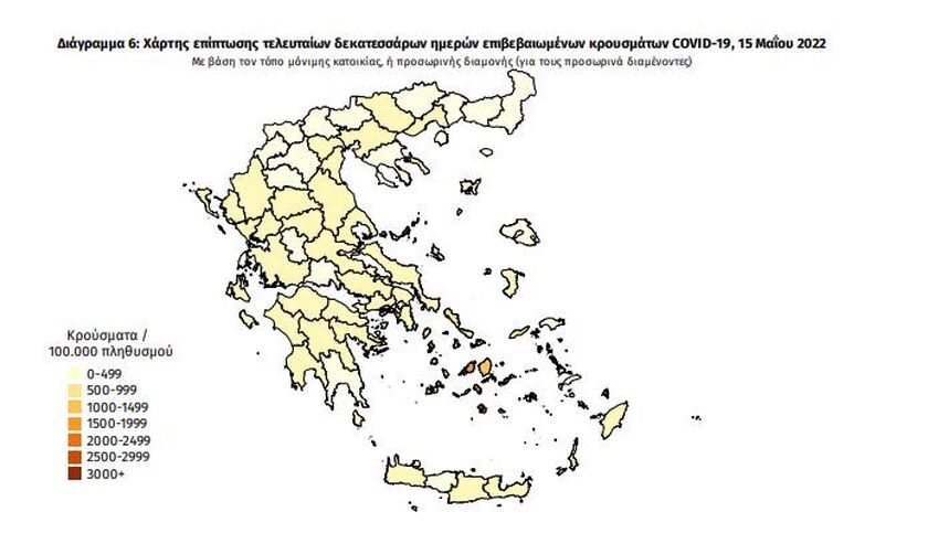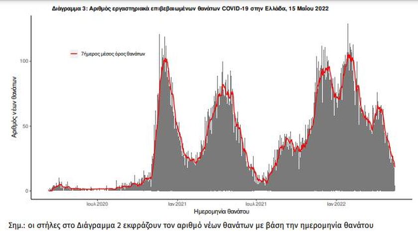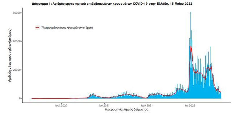 «Τα νέα εργαστηριακά επιβεβαιωμένα κρούσματα της νόσου(άτομα) που καταγράφηκαν τις τελευταίες 24 ώρες ήταν 3.269. Ο συνολικός αριθμός των ατόμων που νόσησαν ανέρχεται σε 3.392.575 (ημερήσια μεταβολή +0.1%), εκ των οποίων 48.8% άνδρες.