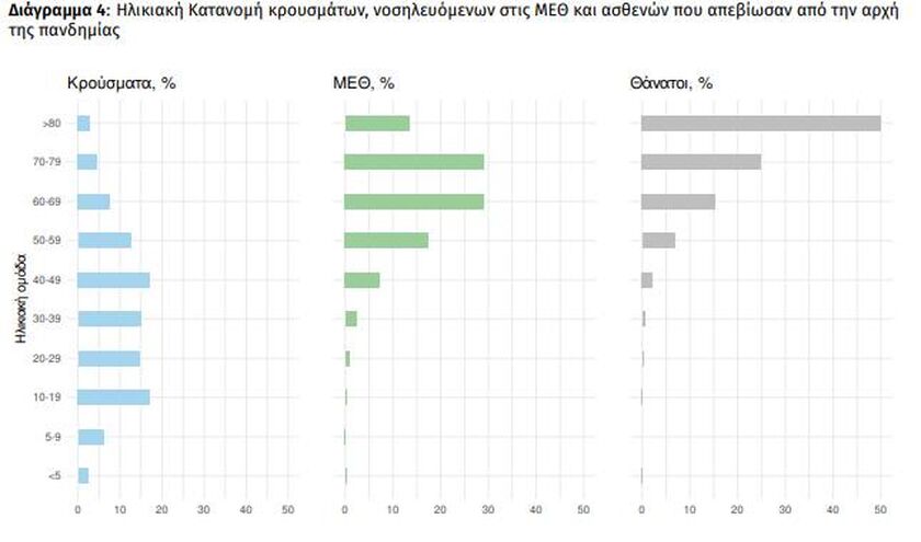 νέων ασθενών COVID-19 στα νοσοκομεία της επικράτειας είναι 94 (ημερήσια μεταβολή -25.98%). Ο μέσος όρος εισαγωγών του επταημέρου είναι 113 ασθενείς.Η διάμεση ηλικία των κρουσμάτων είναι 36 έτη (εύρος 0.2 έως 112 έτη), ενώ η διάμεση ηλικία των θανόντων είναι 79 έτη (εύρος 0.2 έως 106 έτη)».