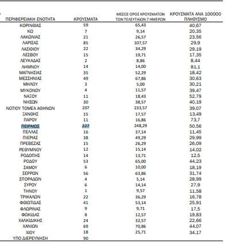 Αναλυτικά σύμφωνα με τα όσα ανακοίνωσε ο ΕΟΔΥ σήμερα Κυριακή 15 Μαίουη γεωγραφική κατανομή των κρουσμάτω έχει ως εξής: