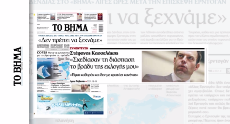 Συνέντευξη Κασσελάκη στο «Βήμα της Κυριακής»