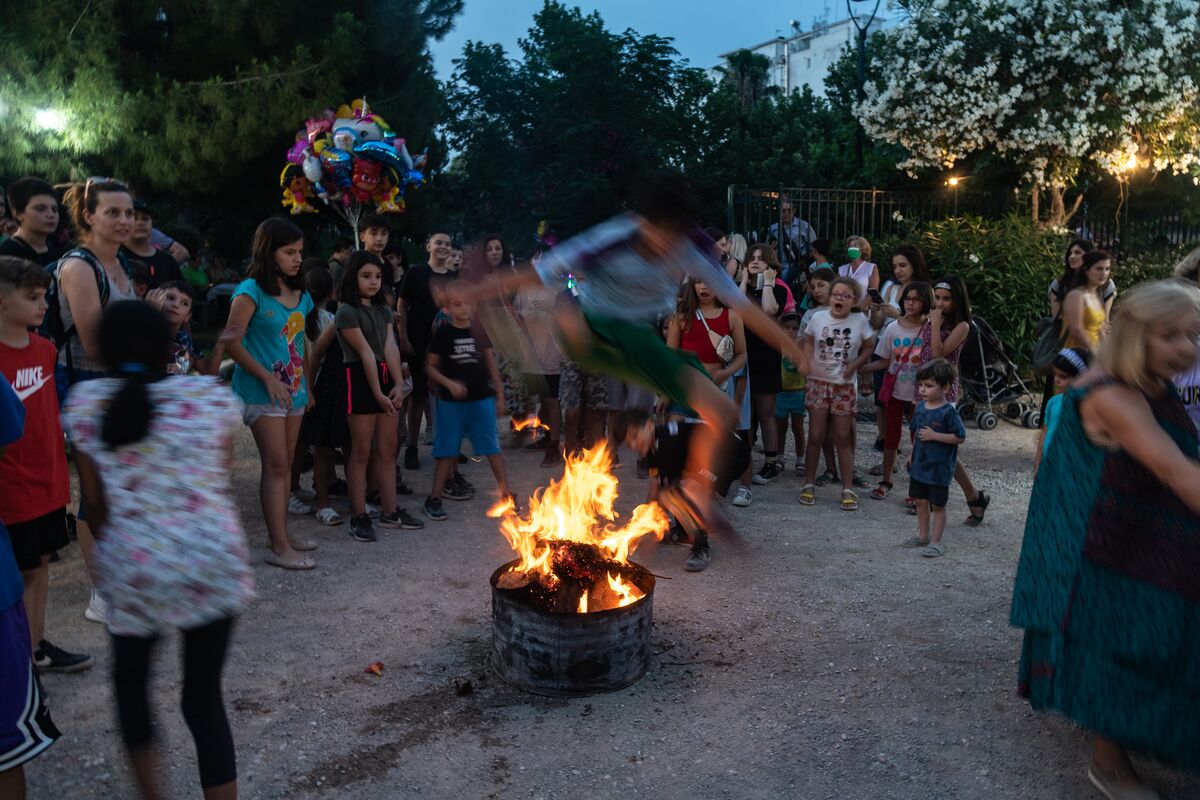 Το βασικό στοιχείο όμως εδώ, είναι η φωτιά. Η φωτιά που προκαλεί δέος, η φωτιά που εξαγνίζει, η φωτιά που σμίγει τη γειτονιά. Άνθρωποι όλων των ηλικιών πέρασαν από πάνω της χορεύοντας και γελώντας. Κρατώντας ο ένας τον άλλο σφιχτά από το χέρι, καθαρίζοντας αυτό το «απρόσωπο» που μας περιβάλλει πλέον στη σύγχρονη ζωή.