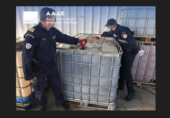 Οι  ελεγκτές της ΑΑΔΕ προχώρησαν στην οριστική ανάκληση της άδειας λειτουργίας πρατηρίου υγρών καυσίμων, στον νομό Ηλείας. Ο επιτόπιος έλεγχος αποκάλυψε ότι το πρατήριο διατηρούσε δύο παράνομες δεξαμενές καυσίμων, με 2.040 λίτρα πετρελαίου ναυτιλίας. Οι ελεγκτές βρήκαν, στην πίσω πλευρά της εγκατάστασης, βυτιοφόρο, την ώρα, που εκφόρτωνε πετρέλαιο ναυτιλίας σε πλαστική δεξαμενή, για την οποία το πρατήριο δεν διέθετε άδεια, ούτε είχε συνδεθεί με το σύστημα εισροών – εκροών.