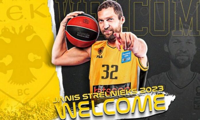 «Η ΑΕΚ ΒC ανακοινώνει, ότι συνήψε σήμερα (10/08) συμφωνία με τον Γιάνις Στρέλνιεκς (Jānis Strēlnieks).