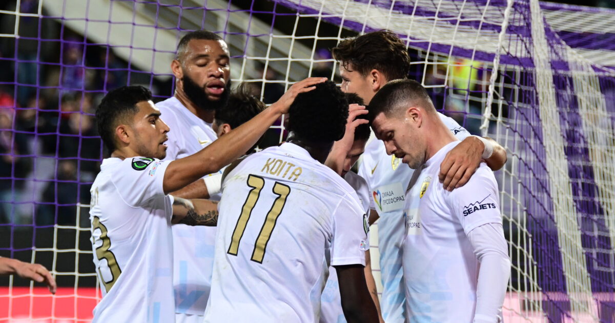 Οι παίκτες της ΑΕΚ πανηγυρίζουν το γκολ του Γκατσίνοβιτς/ (ΑΝΤΩΝΗΣ ΝΙΚΟΛΟΠΟΥΛΟΣ / EUROKINISSI)