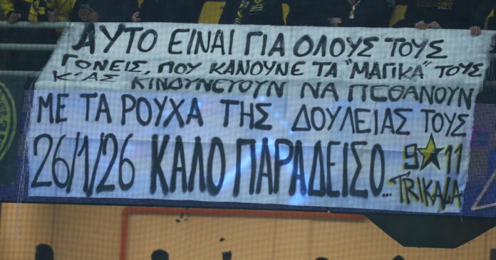 Η ΑΕΚ αντιμετωπίζει τον Ολυμπιακό στην Allwyn Arena για την 19η αγωνιστική της Super League και οι οπαδοί της δεν ξέχασαν την τραγωδία με τις 5 νεκρές γυναίκες στο εργοστάσιο της Βιολάντα στα Τρίκαλα.