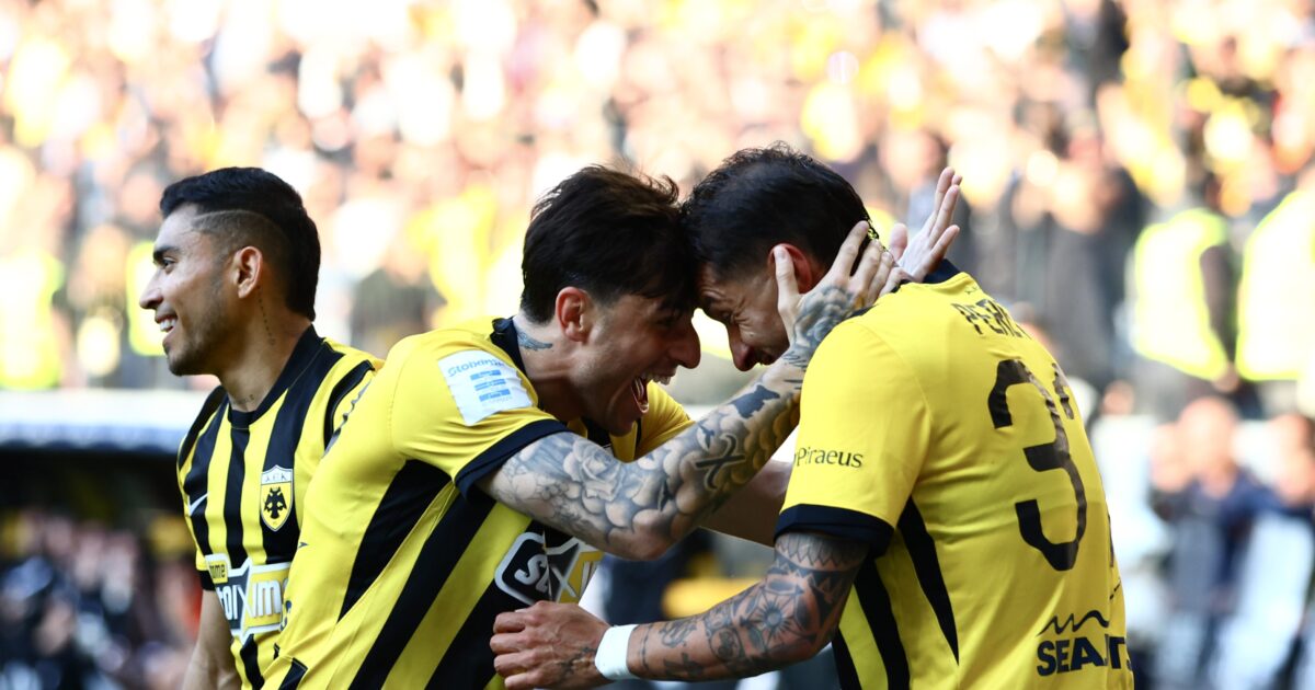 Οι παίκτες της ΑΕΚ πανηγυρίζουν το γκολ/ (ΜΑΡΙΛΙΑ ΒΑΣΙΛΑΚΟΠΟΥΛΟΥ / EUROKINISSI)