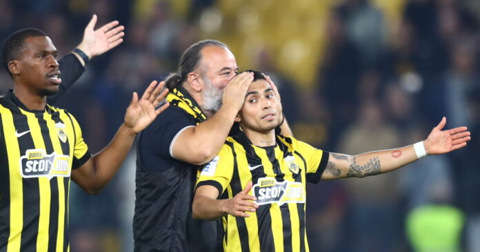 Ο ισχυρός άνδρας της ΑΕΚ φίλησε, μάλιστα, τον Πινέδα, θέλοντας να τον ευχαριστήσει για το γκολ που πέτυχε στο 92′.