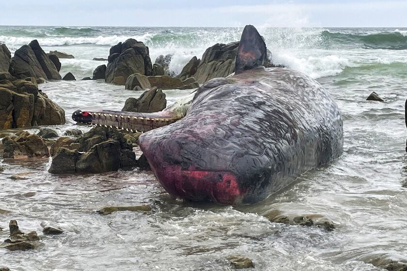Εικόνες που τραβήχθηκαν από αέρος δείχνουν δεκάδες φάλαινες διάσπαρτες κατά μήκος μιας τεράστιας παραλίας Πηγή: Linton Kringle/Huon Aquaculture via AP