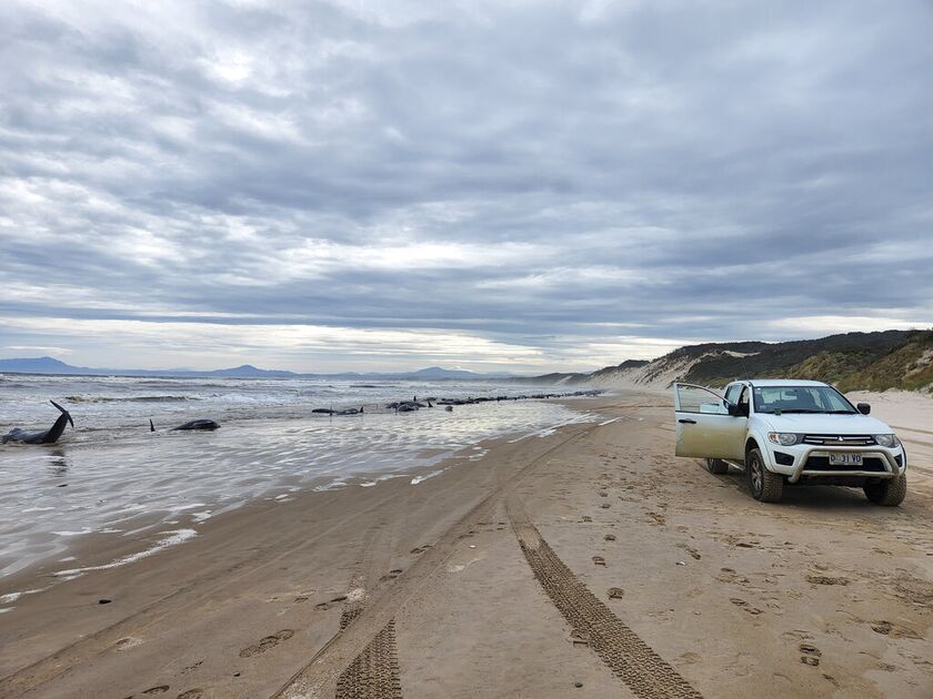 Περίπου 230 φάλαινες πιλότοι εντοπίστηκαν να έχουν εξοκείλει στις δυτικές ακτές της Τασμανίας, στην Αυστραλία, με αξιωματούχους να δηλώνουν ότι μόνο οι μισές φαίνεται να είναι ακόμη ζωντανές.