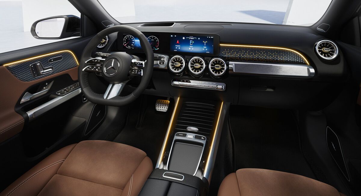 Στο εσωτερικό η στάνταρ διάταξη είναι ένα ψηφιακός πίνακας οργάνων 7,0 ιντσών και μια οθόνη αφής για το σύστημα infotainment 10,25 ιντσών. Ο πίνακας οργάνων μεγαλώνει στις πιο πλούσιες εκδόσεις, ενώ αναβαθμισμένο είναι και το σύστημα infotainement MBUX. Που πλέον περιλαμβάνει και κάποια παιχνίδια, ενώ εμπλουτισμένα είναι και τα συστήματα υποβοήθησης.