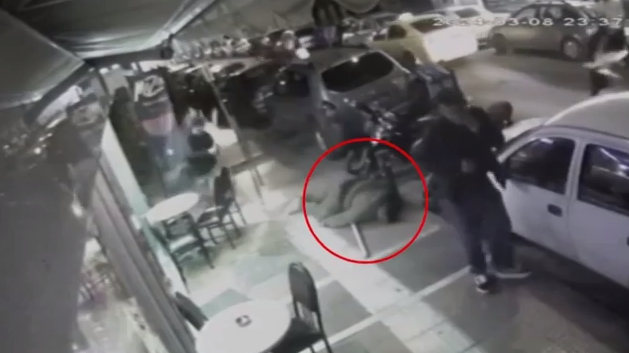 Μια από τις σφαίρες πετυχαίνει στο κεφάλι ένα μέλος της συμμορίας ο οποίος σωριάζεται στο πεζοδρόμιο. Ακριβώς διπλά του η κάμερα ασφαλείας έχει καταγράψει έναν κάτοικο ο οποίος βρέθηκε εν μέσω πυροβολισμών και για ελάχιστα εκατοστά γλίτωσε από τις σφαίρες των κακοποιών.
