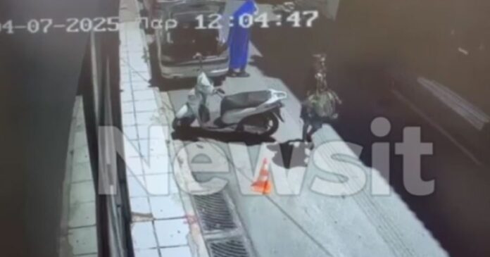 Είναι η στιγμή που ο δράστης της δολοφονίας του καθηγητή στην Αγία Παρασκευή βγαίνει από το αυτοκίνητο των Αλβανών συνεργών του τυλιγμένος με μια κουβέρτα για να μην καταγραφούν τα χαρακτηριστικά του προσώπου του από κάμερες ασφαλείας.