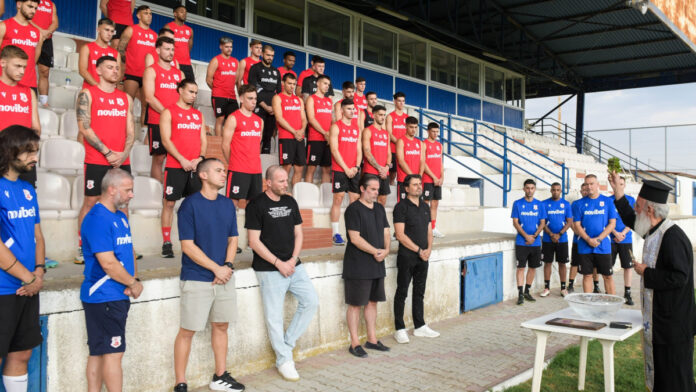 Η προετοιμασία για τους “κόκκινους” ξεκίνησε και την Τετάρτη πριν την έναρξη της προπόνησης, ο πάτερ Θωμάς τέλεσε για ακόμη μια χρονιά τον καθιερωμένο αγιασμό παρουσία του Προέδρου Τάσου Καζία και του αντιπρόεδρου Αλεξάνδρου Χατζηδημητρίου, αλλά και σύσσωμου του ποδοσφαιρικού τμήματος. Μάλιστα η ευχή του ήταν να ξεκινήσει η ομάδα τα… τρίποντα κάνοντας την αρχή στο Αγρίνιο.