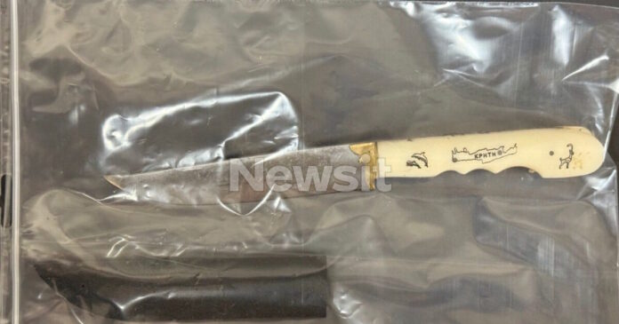 Αυτό είναι το μαχαίρι που χρησιμοποίησε ο 20χρονος για να σκοτώσει τον 27χρονο γιο του ταξίαρχου της ΕΛΑΣ, στον Ασύρματο του Αγίου Δημητρίου. Μάλιστα, στην κατάθεση του ο ναύτης υποστήριξε πως λίγη ώρα μετά τη δολοφονία, το σκούπισε, το έπλυνε με νερό και το έκρυψε στον θερμοσίφωνα.