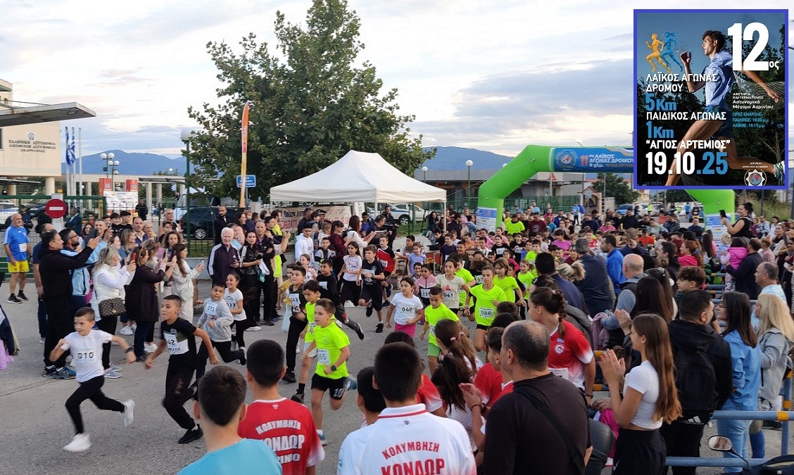 • Την Κυριακή 19/10 και ώρα 18:00 θα εκκινήσει ο 12ος Λαϊκός Αγώνας Δρόμου «Άγιος Αρτέμιος» 5 χλμ. και 800 μέτρων για μαθητές δημοτικών σχολείων.