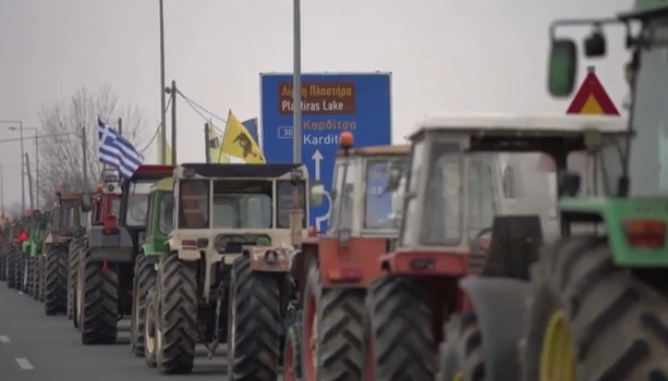 Για μια ώρα έκλεισαν συμβολικά τον αυτοκινητόδρομο Ε-65, οι παραγωγοί του νομού Καρδίτσας που έχουν στήσει το μπλόκο τους στον κόμβο έξω από την πόλη.