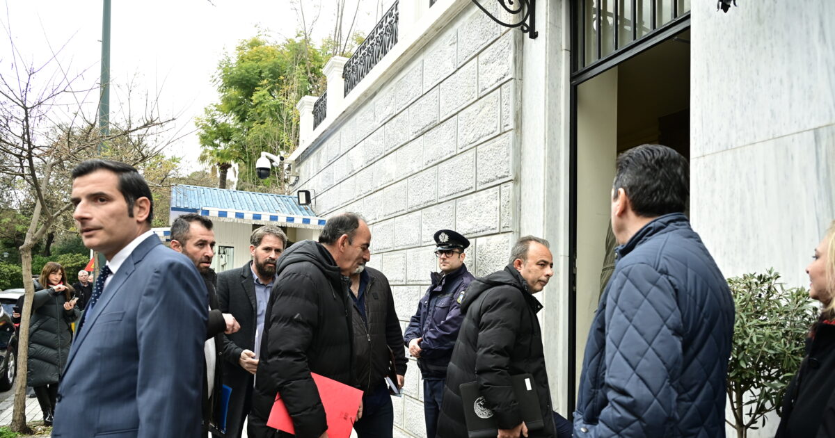 Μία ώρα νωρίτερα από το προγραμματισμένο έφτασε στο Μέγαρο Μαξίμου η αντιπροσωπεία των μπλόκων, ενόψει της συνάντησής της με τον Κυριάκο Μητσοτάκη, η οποία έχει οριστεί για τη 1 το μεσημέρι. Η αντιπροσωπεία των αγροτών, που θα συναντηθεί με τον πρωθυπουργό, αποτελείται από 25 άτομα και 6 παρατηρητές. Έξω από το κυβερνητικό μέγαρο βρέθηκε και ο Κώστας Ανεστίδης, πρόσωπο που έχει τεθεί εκτός τόσο από την κυβερνητική πλευρά όσο και από το μπλόκο των Μαλγάρων, το οποίο έως πρόσφατα εκπροσωπούσε.