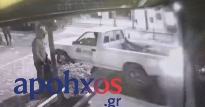 Η στιγμή που το αγροτικό πέφτει στο κοσμηματοπωλείο / apohxos.gr