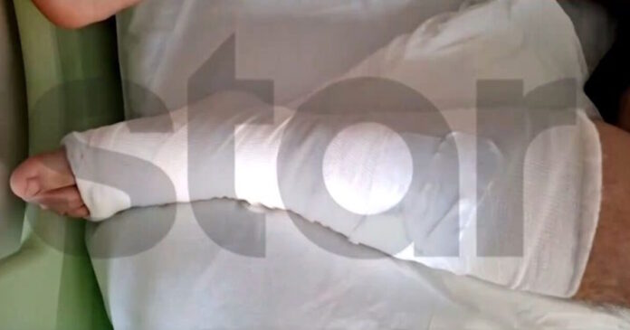 Στις εικόνες που εξασφάλισε το Star φαίνεται το ένα του πόδι να είναι τυλιγμένο με γάζες μετά το χειρουργείο στο Καραμανδάνειο.