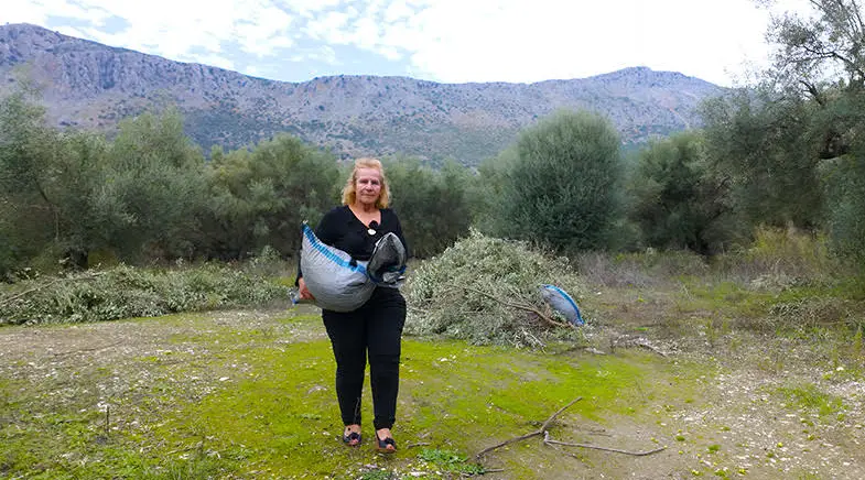 Συνεχίζοντας το οδοιπορικό μας στην Αιτωλοακαρνανία και φτάνοντας κοντά στον Ιόνιο συναντάμε ξανά την αγαπημένη κυρία Ντίνα. Αυτή τη φορά τη βρίσκουμε στο χωράφι της, στον ελαιώνα, όπου μαζεύει τις ελιές της και –όπως μόνο εκείνη ξέρει– τραγουδάει με την ψυχή της.