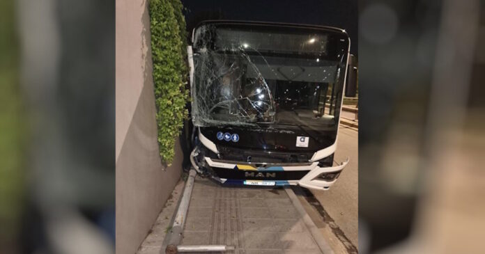 Ανέβηκε στο πεζοδρόμιο, ξήλωσε κολώνες φωτισμού και πινακίδες κυκλοφορίας, «έγδαρε» την περίφραξη του κτιρίου και ευτυχώς σταμάτησε πριν βγει στη λεωφόρο.