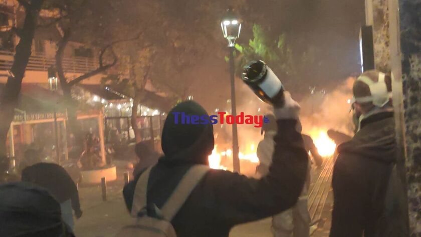 Στη Θεσσαλονίκη, έξω από το Τουρκικό Προξενείο αφού άγνωστοι που συμμετείχαν στην πορεία για τη μνήμη του Αλέξανδρου Γρηγορόπουλου, εξαπέλυσαν δεκάδες βόμβες μολότοφ και πέτρες κατά των αστυνομικών δυνάμεων.