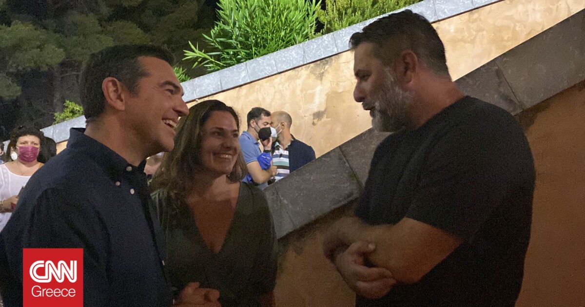 O πρόεδρος του ΣΥΡΙΖΑ και η κυρία Μπαζιάνα αφού παρακολούθησαν την παράσταση, συνομίλησαν και με τους συντελεστές της.