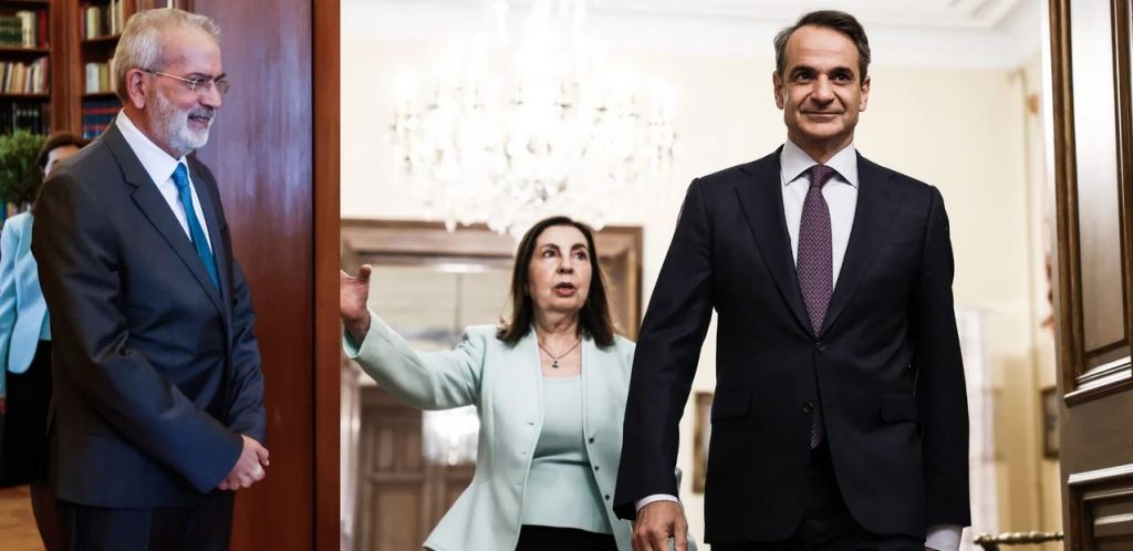 Το πρωί της Τετάρτης η πρόεδρος της Δημοκρατίας Κατερίνα Σακελλαροπούλου υποδέχτηκε στο Προεδρικό Μέγαρο τον πρόεδρο του Ελεγκτικού Συνεδρίου Ιωάννη Σαρμά, στον οποίο έδωσε την εντολή σχηματισμού κυβέρνησης, όπως ορίζει το Σύνταγμα.