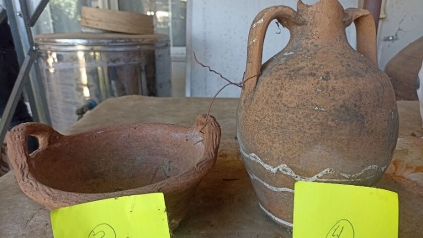 Ακολούθησε έρευνα στο σπίτι του 44χρονου ημεδαπού και στον περιβάλλοντα χώρο εντοπίσθηκαν και κατασχέθηκαν 14 λίθινα αντικείμενα (αρχιτεκτονικά μέλη, βάση κ.α.), δύο κεραμικά σκεύη και ένα μαρμάρινο τμήμα (πιθανόν κίονα).