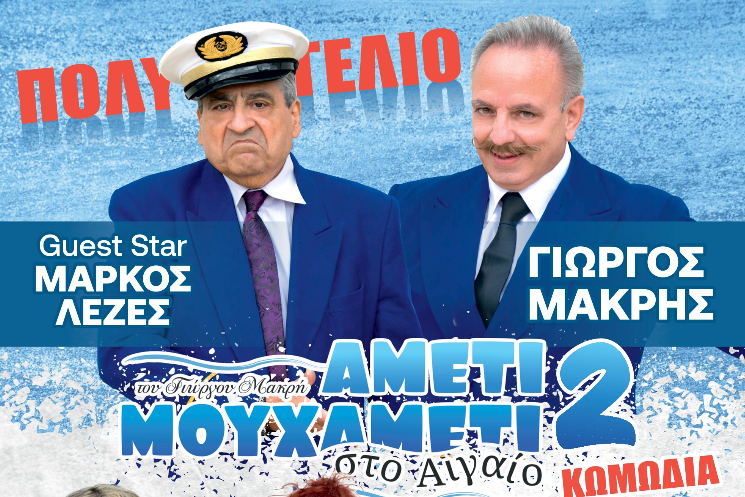Μια μοναδική νεοελληνική κωμωδία που ενώνει την παράδοση με το σήμερα. Η παράσταση «Αμέτι Μου Χαμέτι μου Νο 2 στο Αιγαίο» φέρνει στη σκηνή την καρδιά της ελληνικής παράδοσης, μέσα από το πρίσμα του χιούμορ και της σάτιρας. Πρόκειται για μια θεατρική εμπειρία γεμάτη ανατροπές και γέλιο με πρωταγωνιστές την ελληνική κουλτούρα και τα τοπικά μας προϊόντα. Προϊόντα της Δυτικής Ελλάδας και την αναντικατάστατη γοητεία του ελληνικού τουρισμού.