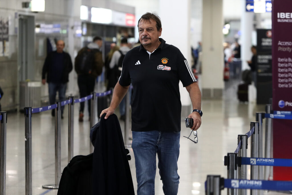 Ο Εργκίν Αταμάν λίγο πριν την αναχώρηση της ομάδας του για το Βελιγράδι, σκεπτόμενος τις επιλόγες που θα κάνει ενόψει της δυσκόλης αποστολής κόντρα στην ομάδα του Ζέλικο Ομπράντοβιτς. (EUROKINISSI)