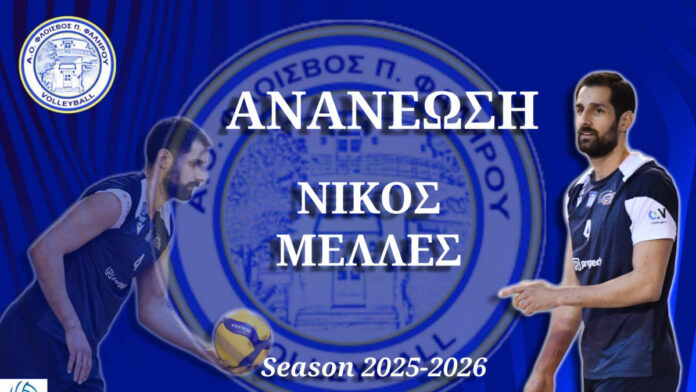 Ο ΑΟ Φλοίσβος Παλαιού Φαλήρου είναι στην ευχάριστη θέση ν’ ανακοινώσει την ανανέωση συνεργασίας, για την αγωνιστική περίοδο του πρωταθλήματος της Volley League 2025-2026, με τον κεντρικό Νίκο Μελλέ.