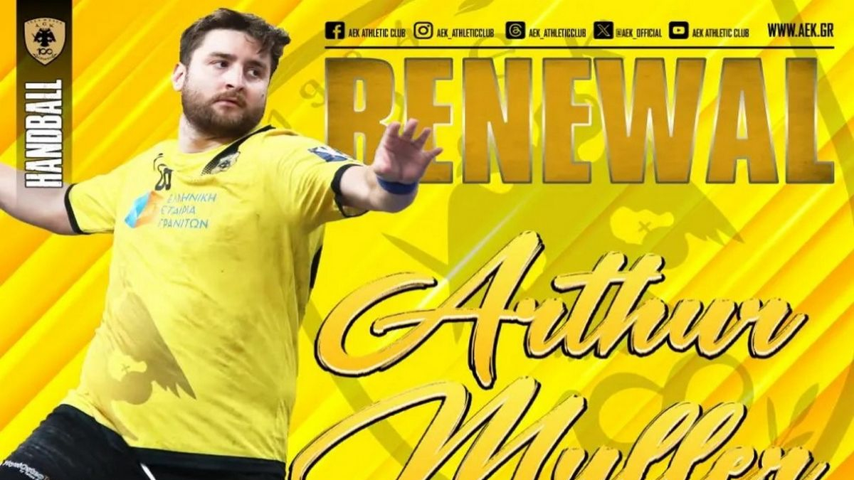 «Η ΑΕΚ βρίσκεται στην ευχάριστη θέση να ανακοινώσει την ανανέωση της συνεργασίας της με τον Άρθουρ Μίλερ. Ο Γάλλος αθλητής θα ενισχύσει και τη νέα σεζόν το Χάντμπολ Ανδρών του Συλλόγου. Ο δίμετρος Γάλλος ίντερ ήρθε τον περασμένο Ιανουάριο στην ομάδα και βοήθησε τα μέγιστα μέχρι το τέλος της σεζόν».
