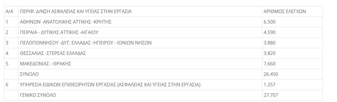 3.2. ΕΛΕΓΧΟΙ ΑΝΑ ΠΕΡΙΦΕΡΕΙΑΚΗ Δ/ΝΣΗ ΕΠΙΘΕΩΡΗΣΗΣ ΑΣΦΑΛΕΙΑΣ ΚΑΙ ΥΓΕΙΑΣ ΣΤΗΝ ΕΡΓΑΣΙΑ ΚΑΙ ΥΠΗΡΕΣΙΑΣ ΕΙΔΙΚΩΝ ΕΠΙΘΕΩΡΗΤΩΝ ΕΡΓΑΣΙΑΣ