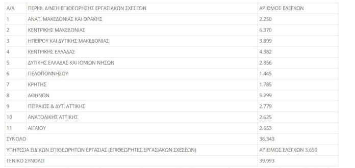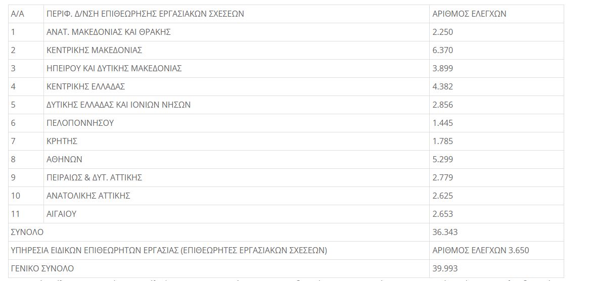 3.1. ΕΛΕΓΧΟΙ ΑΝΑ ΠΕΡΙΦΕΡΕΙΑΚΗ Δ/ΝΣΗ ΕΠΙΘΕΩΡΗΣΗΣ ΕΡΓΑΣΙΑΚΩΝ ΣΧΕΣΕΩΝ ΚΑΙ ΥΠΗΡΕΣΙΑΣ ΕΙΔΙΚΩΝ ΕΠΙΘΕΩΡΗΤΩΝ ΕΡΓΑΣΙΑΣ