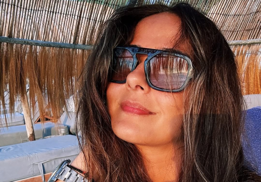 Και αυτό φάνηκε από τις φωτογραφίες που ανέβασε από τις οικογενειακές διακοπές με μαγιό και mood και όψη παραλίας και μόνο μία με σχολική τσάντα, αυτή του γιου της, Νικήτα.