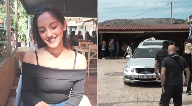 Στη κηδεία τραγικές φιγούρες οι γονείς και αδελφή της Κυριακής, οποίοι μέχρι τώρα δεν μπορούν να συνειδητοποιήσουν τι έχει γίνει.