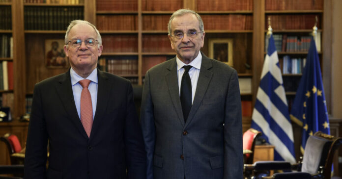 Στο Προεδρικό Μέγαρο βρέθηκε το πρωί της Τρίτης (17.02.2026) ο πρώην πρωθυπουργός και πρόεδρος της Νέας Δημοκρατίας Αντώνης Σαμαράς, στο πλαίσιο του κύκλου επαφών που πραγματοποιεί ο Πρόεδρος της Δημοκρατίας Κωνσταντίνος Τασούλας, σε μια πρωτοβουλία με θεσμικό πρόσημο που –σύμφωνα με το σκεπτικό της– στοχεύει στην ενίσχυση του διαλόγου και ενός κλίματος πολιτικής συνεννόησης.