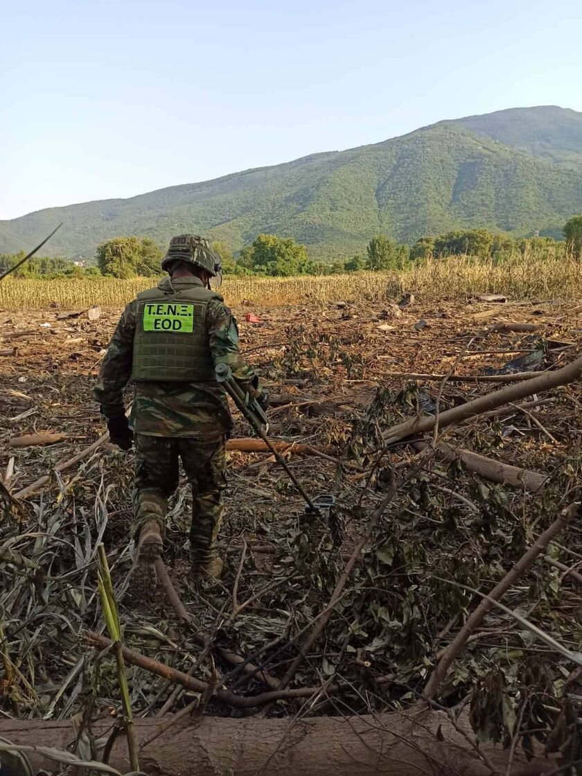 Μετά δε τη διαπίστωση από το ΕΔΛΟ/ΠΒΧ για τη μη ύπαρξη Ράδιο-Βιοχημικών και Πυρηνικών (ΡΒΧΠ) ουσιών, το ΤΕΝΞ εισήλθε στη περιοχή της συντριβής, ερευνά και σημαίνει τα βλήματα. Θα ακολουθήσει συγκέντρωση και απομάκρυνση ή επί τόπου εξουδετέρωσή τους κάτι που θα κριθεί από το κλιμάκιο.