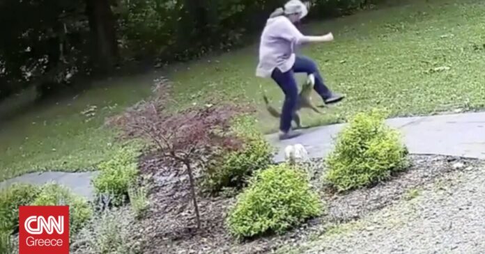 Κάμερα ασφαλείας κατέγραψε ένα συγκλονιστικό βίντεο με μια γυναίκα από τη Νέα Υόρκη να δέχεται επίθεση από μια αλεπού που εμφανίστηκε στην αυλή της.