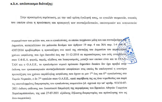 «Θέμα: Παράλληλη σύνταξη μη εφαρμογή νόμου αριθ. 4387/16, προσαύξηση στην ήδη εκδοθείσα απόφαση κύριας σύνταξης από 13/05/2016 και μετά.