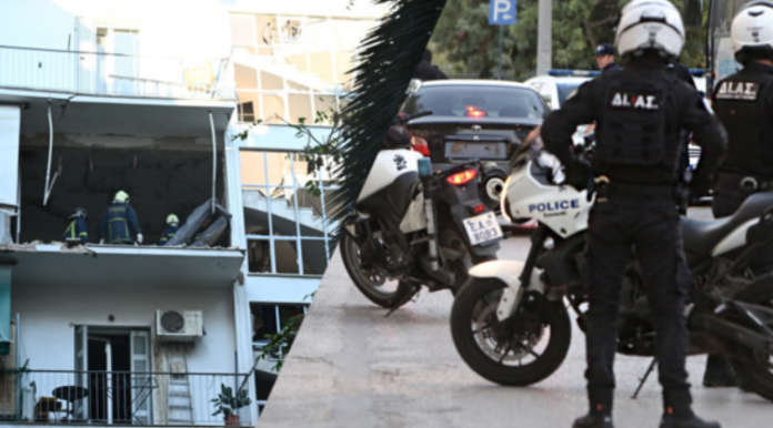 Στον ακάλυπτο χώρο της πολυκατοικίας έχουν εκσφενδονιστεί σοβάδες και τοίχοι από το διαμέρισμα.