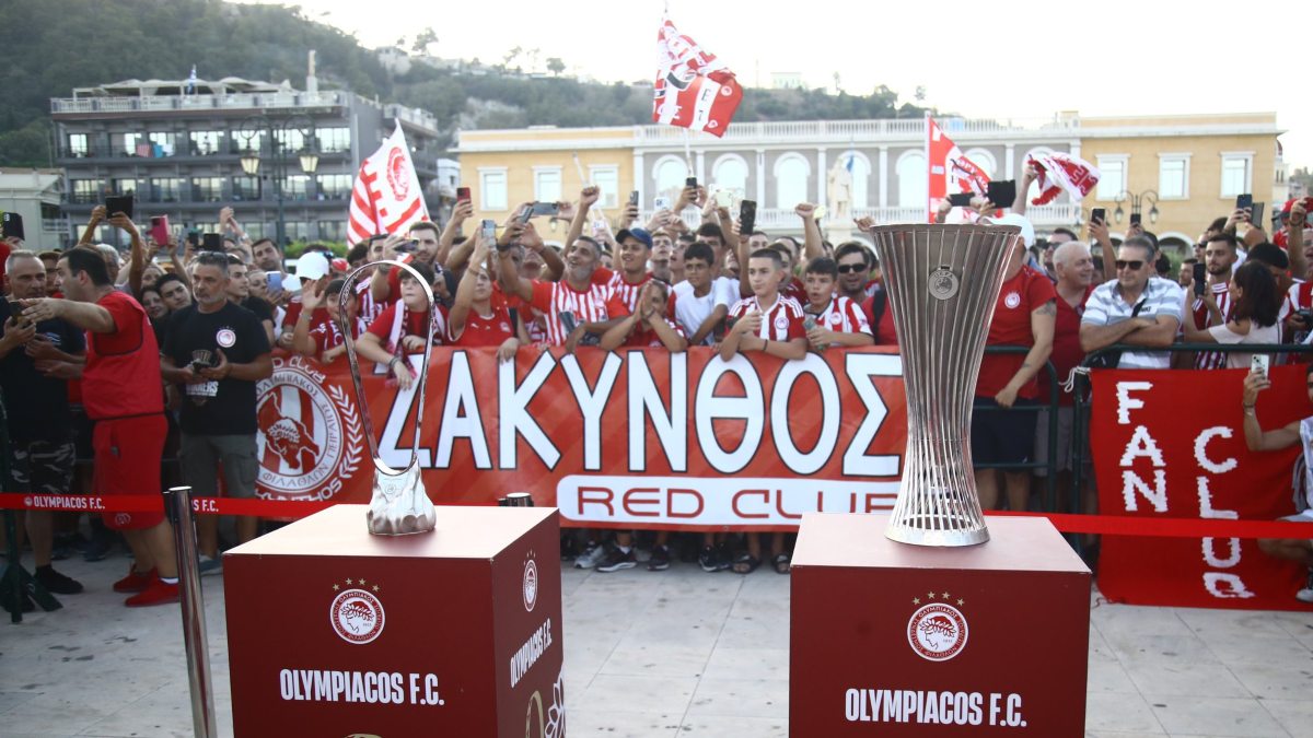 Τα τρόπαια του Europa Coneference League και του UEFA Youth League συνεχίζουν την περιοδεία τους σε όλη την Ελλάδα. Σειρά έχει η Ζάκυνθος, πλήθος κόσμου από φίλους του Ολυμπιακού συγκεντρώθηκε στην πλατεία Σολωμού για να βγάλει φωτογραφίες και να θαυμάσει από κοντά τα ερυθρόλευκα τρόπαια.