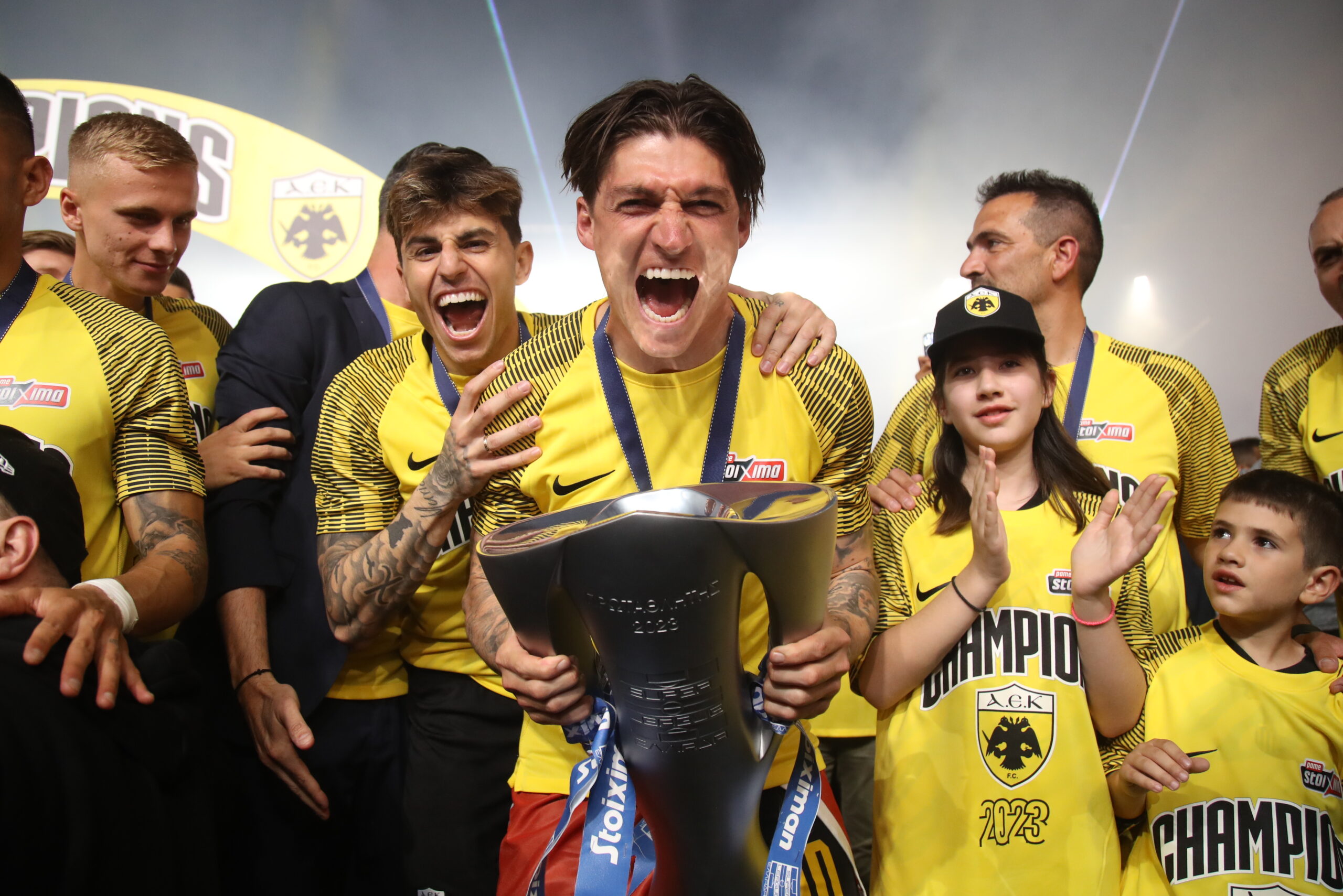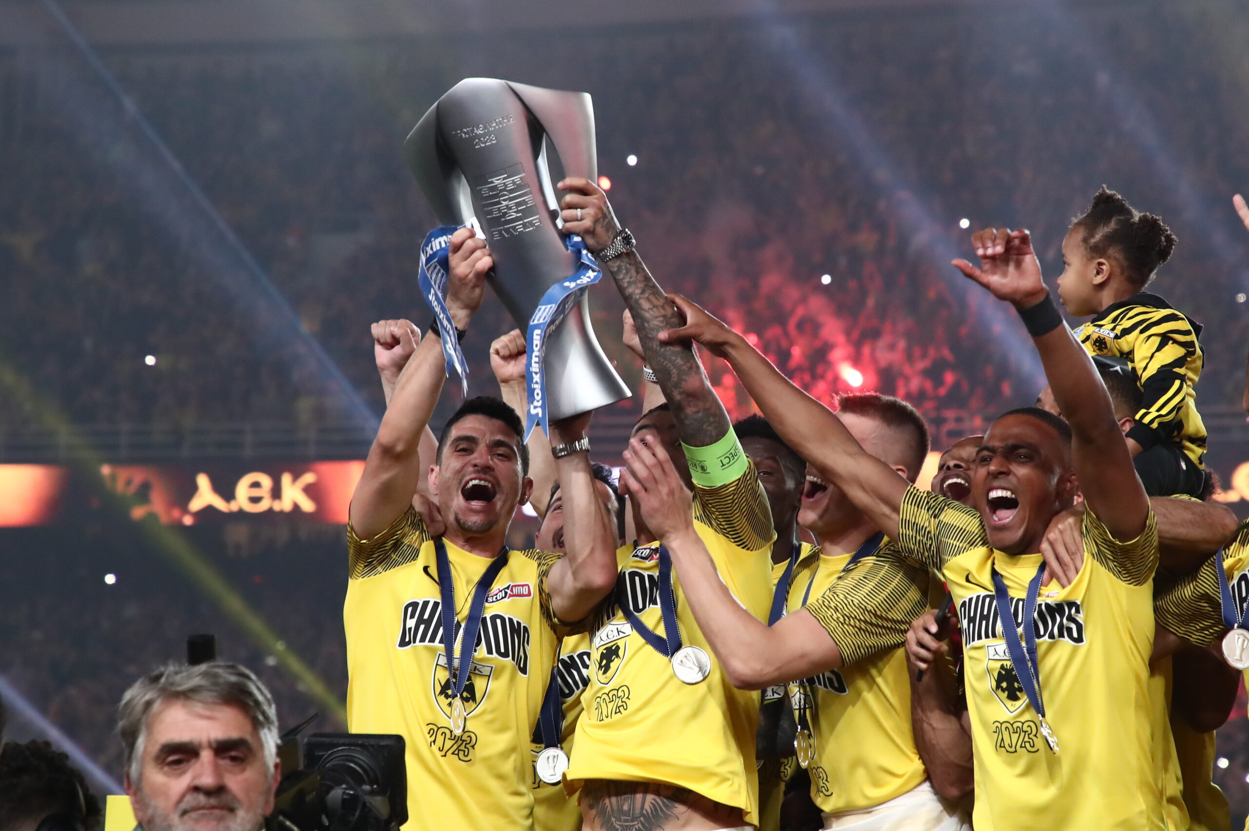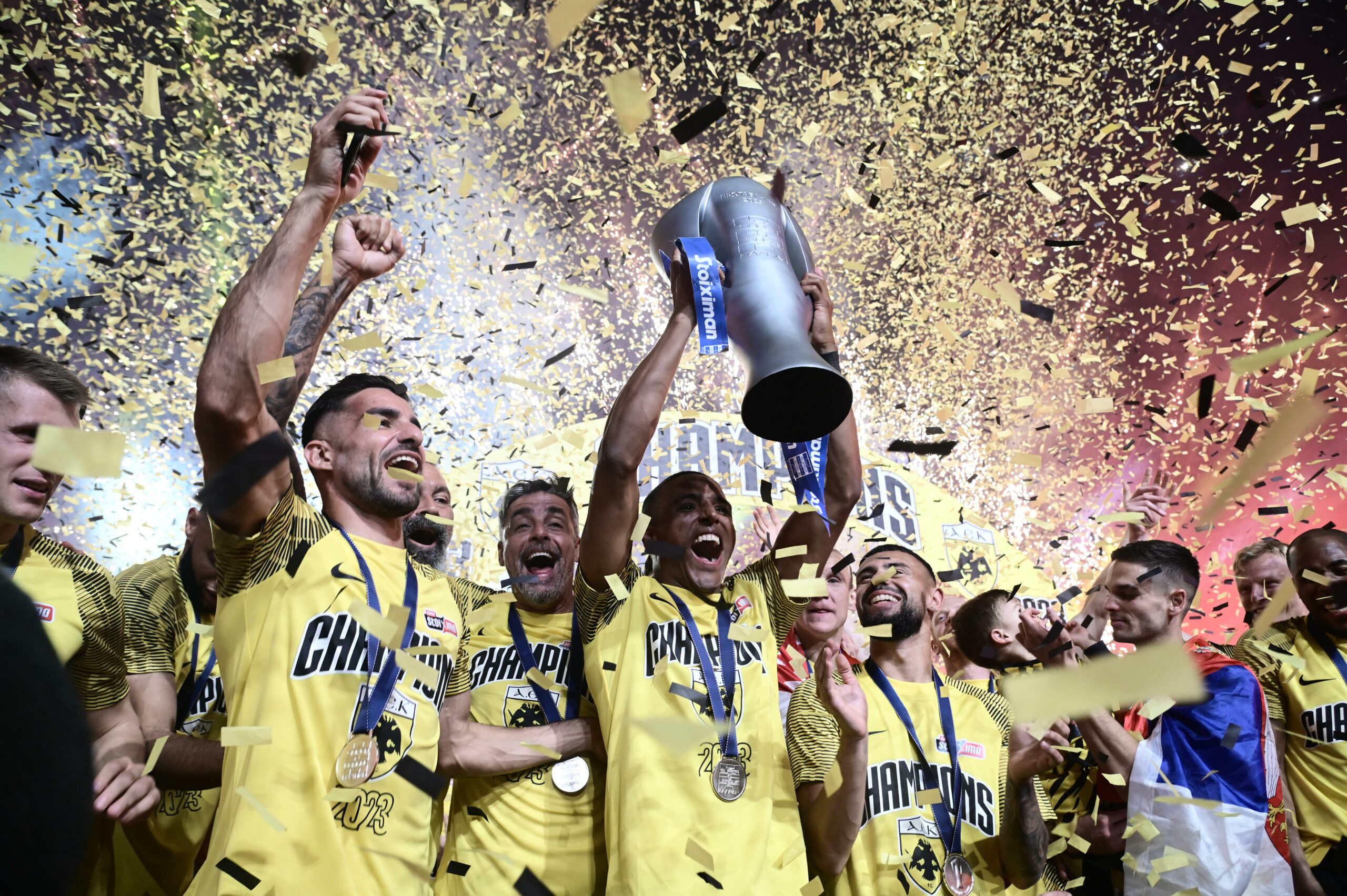 Η ΑΕΚ στέφθηκε πρωταθλήτρια Ελλάδας για 13η φορά στην ιστορία της, μέσα σε ένα κλίμα γιορτινό στην “OPAP Arena”, τόσο εντός όσο και εκτός γηπέδου μετά τη νίκη επί του Βόλου.