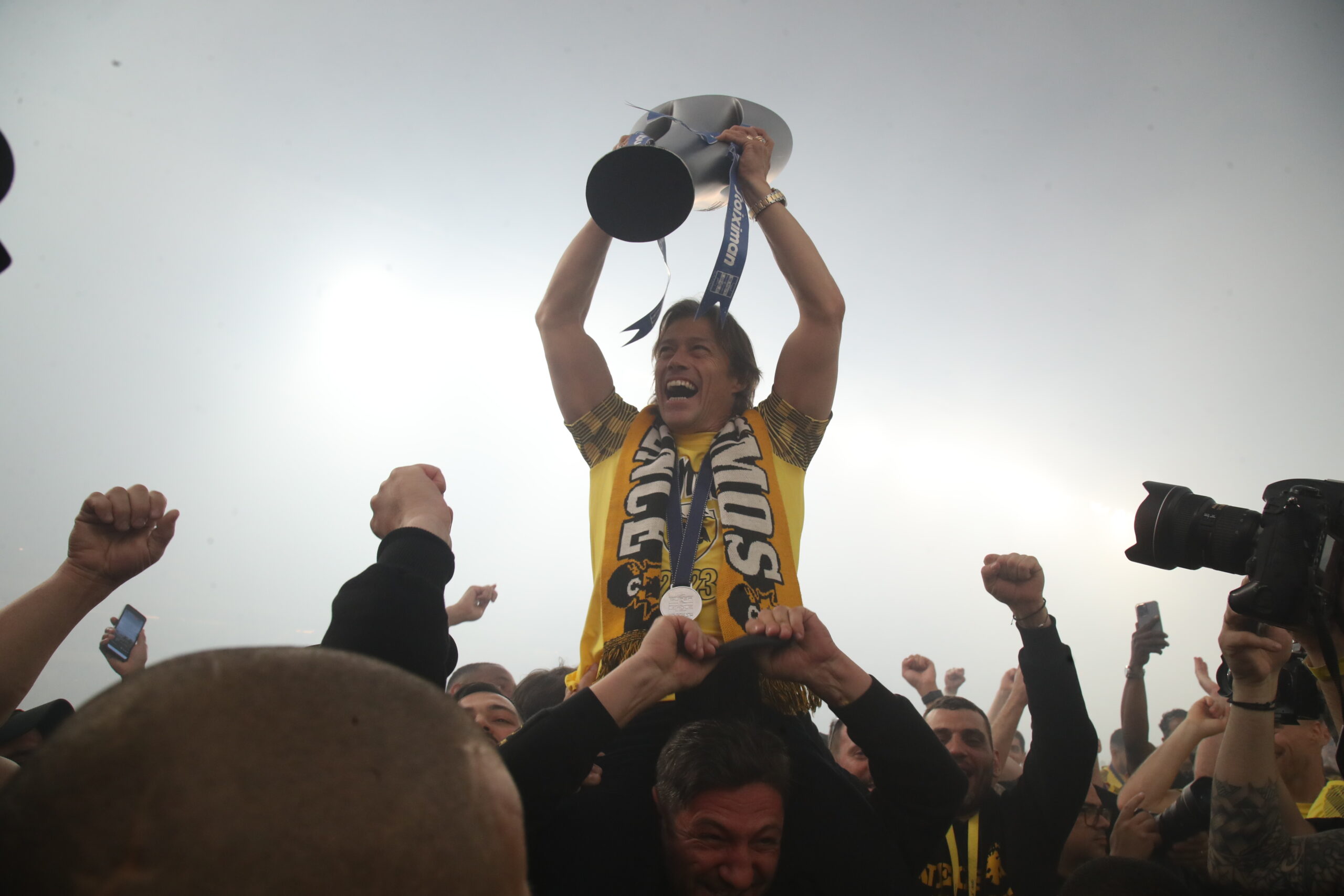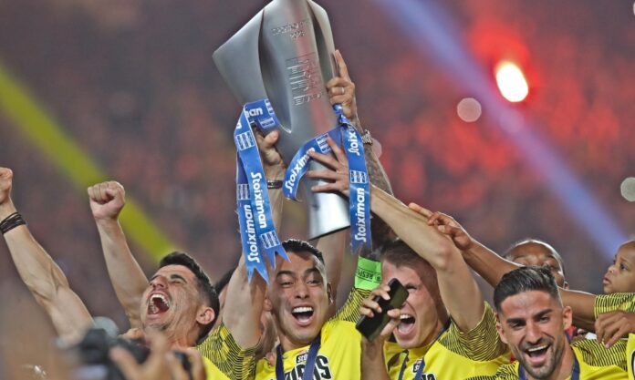Ο Σέρχιο Αραούχο, που έχασε το φινάλε πλέι οφ λόγω του σοβαρού τραυματισμού που υπέστη στο γόνατο, ύψωσε στον ουρανό της Νέας Φιλαδέλφειας το τρόπαιο μαζί με τον έτερο αρχηγό της “Ένωσης”, Πέτρο Μάνταλο.