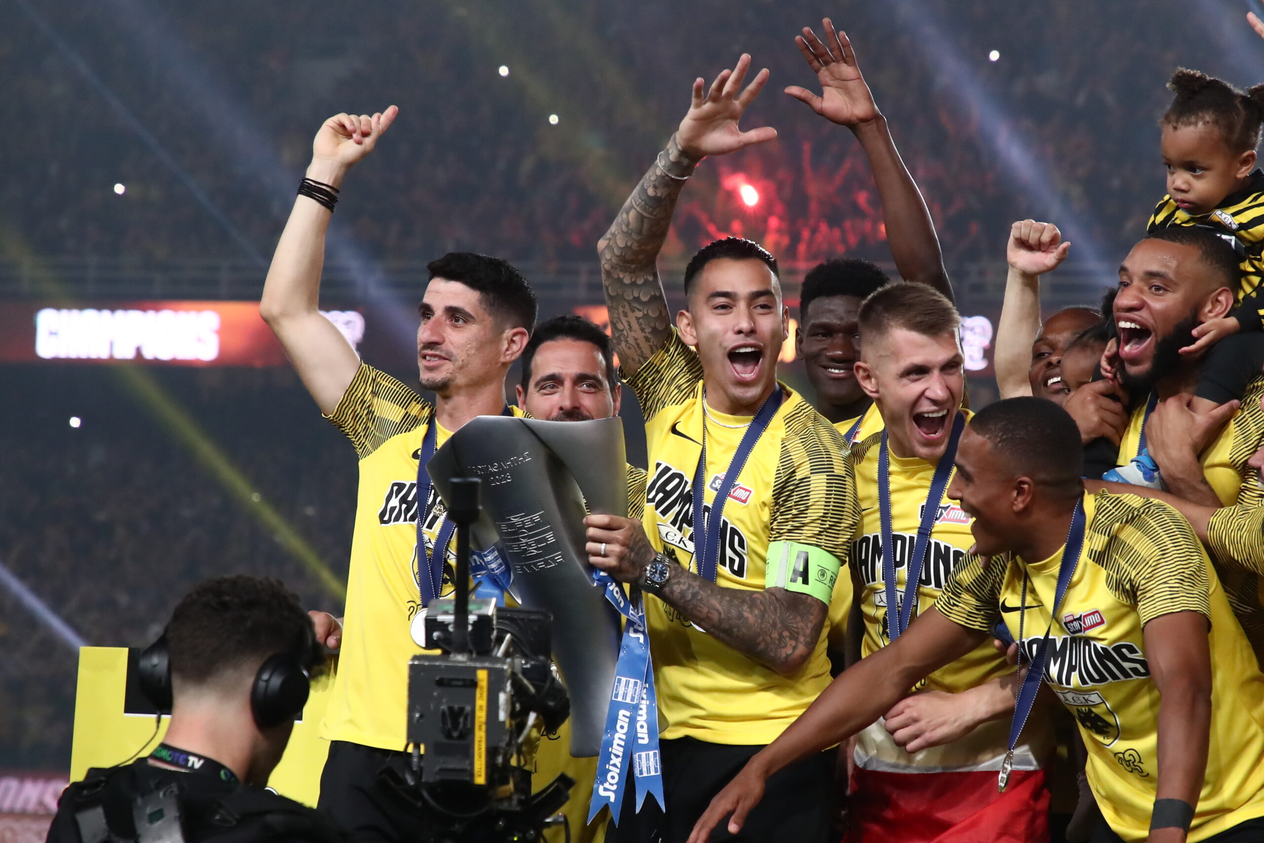 Στα μεγάφωνα του γηπέδου “ηχούσε” το “We are the Champions” για τους πρωταθλητές του Ματίας Αλμέιδα, με τους οπαδούς να ζητωκραυγάζουν και να βάζουν… φωτιά στην “OPAP Arena”.//Λ.