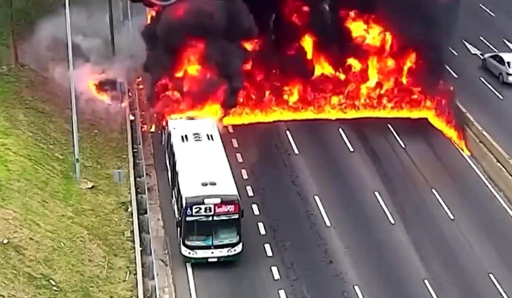 Συγκεκριμένα, το λεωφορείο ξεκίνησε να φλέγεται στον αυτοκινητόδρομο General Paz της πρωτεύουσας της Αργεντινής και καταγράφηκε από τις κάμερες ασφαλείας της αστυνομίας της πόλης.
